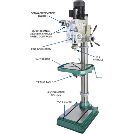 Grizzly G0779 220V 23-3/8 Inch Heavy-Duty Floor Model Gearhead Drill Press