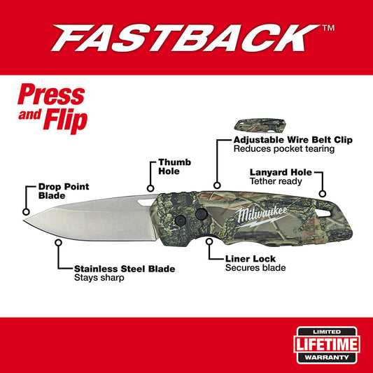 Milwaukee 48-22-1524 FASTBACK Camo Folding Pocket Knife
