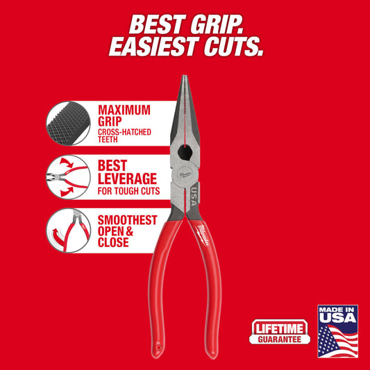 Milwaukee MT505 8" Long Nose Dipped Grip Pliers - Made In USA