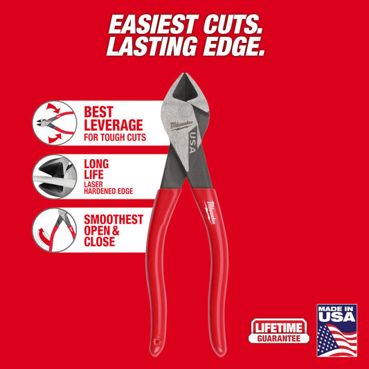 Milwaukee MT508 8" Diagonal Dipped Grip Cutting Pliers - Made In USA