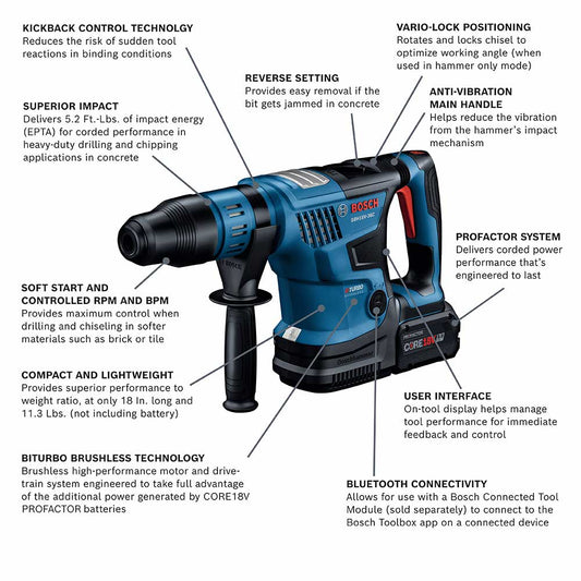 Bosch GBH18V-26DK15 18V SDS Plus 1 Inch Rotary hammer Kit