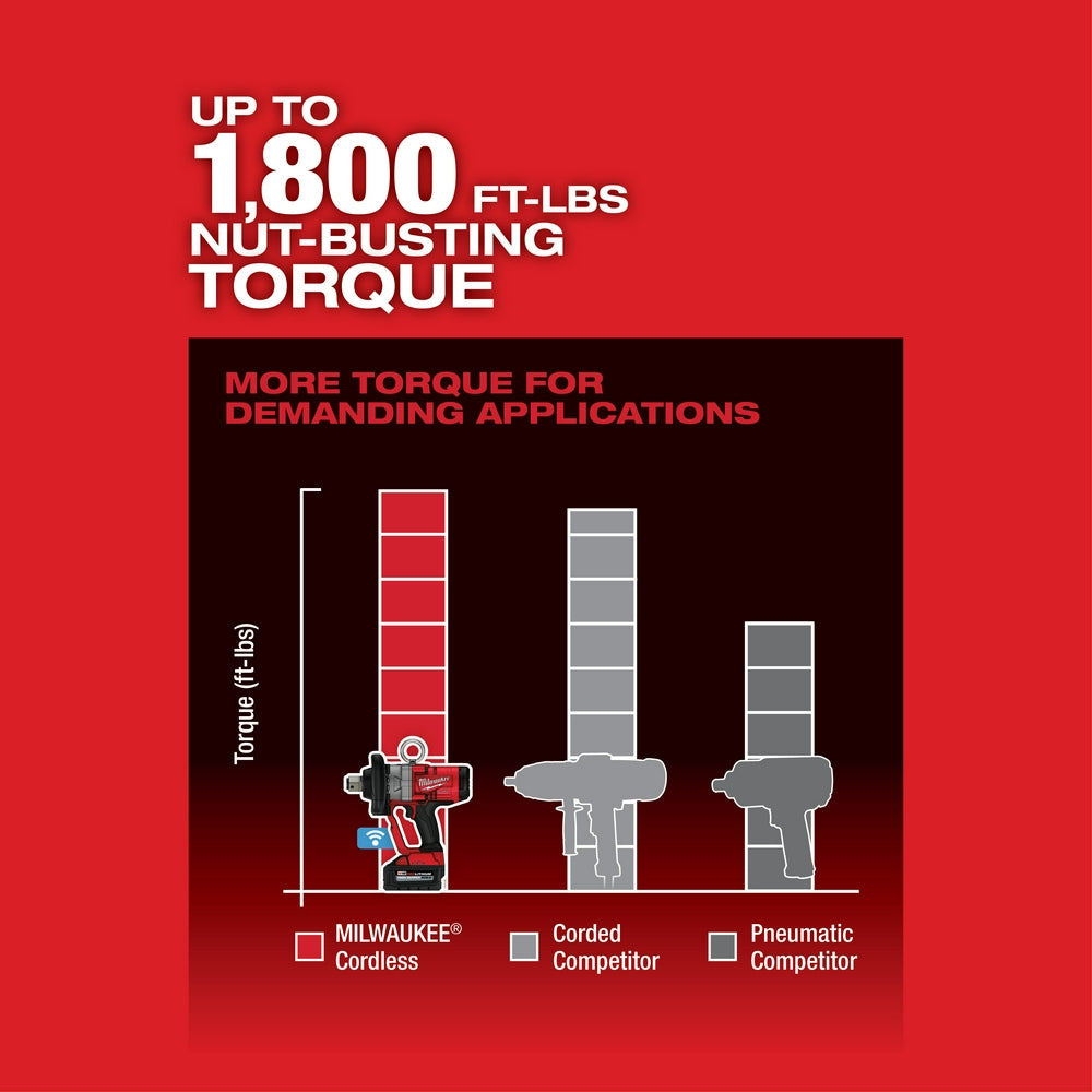 • POWERSTATE Brushless Motor delivers up to 1,800 ft-lbs. Nut-Busting Torque, Making it the World's Most Powerful Cordless Impact Wrench
